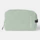 Modern Minimal Sage Green Personalised Name Dopp Kit. Crafted with a modern minimalist design, this bag is perfect for keeping your essentials organised on the go. Personalise it with your name or initials for a touch of elegance. Ideal for busy professionals, frequent travelers, or anyone who loves keeping things tidy in style. Simplify your beauty routine with this chic accessory!