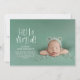 Hello world hand written modern minimal photo birth announcement. Modern graphic marker pen typography design. Sage green background colour can be changed.