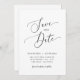 Modern and minimal save the date card featuring an elegant script that says "save the date" in the middle with the brief wedding information. You can add a photo on the back.