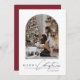 Modern Minimal Script Arch Photo Red Christmas Holiday Card