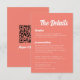 Modern Minimal Script Coral Pink Wedding Details Enclosure Card. Customise with all of your future wedding info for guests, including reception and accommodation details, and a QR code on the back for your wedding website. If you need any changes made, please message the designer.