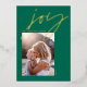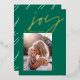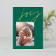 Modern minimal script green joy 1 photo holiday card. Elegant real gold, silver and rose gold foil design.