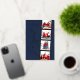 Modern minimal script multi photo Christmas navy blue retro design. Elegant classy real gold, silver and rose gold foil design.