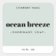 Elegant product label with your product name or scent on a light sea green background with a white border at the bottom. All fonts and colours are customisable. Move and resize elements with the design tool.