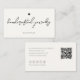 Minimalist and elegant business card with small black heart illustration and stylish handwritten title "handcrafted jewellery" on light background. Perfect for handmade businesses, online stores and small or large businesses. Simple design with social media icons. You can customise the cards with your text and qr code. Add your name, title, social media handle and website address.