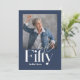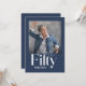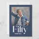 Modern minimal typography simple photo navy blue and white 50th birthday invitation. Part of a contemporary collection.