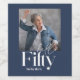 Modern minimal typography simple photo navy blue and white 50th birthday party favour decor wine label. Part of a contemporary collection.