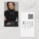 Add your photo and QR code to this simple design template. A simple professional business card. Social media icons included on the back. Stylish and trendy. A professional photo suitable for many occupations. Photographer, model, interior designer, stylist or any occupation requiring a stylish photo. Replace this placeholder sample photo with your own creative photo.