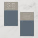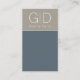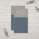 This minimalist card makes a bold statement. The simple vertical design features a slate blue background with a band of taupe along the top edge. The front features your initials while the reverse side includes your name, title and all contact information including phone, web address and social media handle which can be personalised to suit your needs.