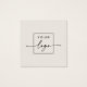 Light tan brown (or custom colour) DIY hang tag product label in a modern, minimalist style with your company name rotated on the side inside a white box. Logo on the back. All colours are customisable. Note that there are no cut holes, you need to cut the holes yourself with a hole punch.