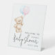 Modern Minimal Teddy Bear Baby Shower Welcome Pedestal Sign