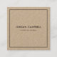 Square Kraft paper business cards or personal profile cards with a thin black border. Customisable name and title/company name on the front. On the back are customisable template fields for name, title/company name/speciality and contact information. A minimal, classy and modern design ideal for an accountant, developer, doctor, writer etc
