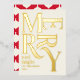 Modern minimal traditional retro vintage graphic typography merry Christmas holiday card. Part of a bold fun holiday collection. Real foil adds a classy designer touch.