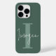 Modern minimal typography monogram sage green and white elegant simple unique personalised phone case design.