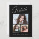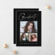 Clean, trendy, modern and elegant "3 photo" graduation announcement cards, featuring design elements of modern text with a unique calligraphy ink script. The graduate's photos are accented with a delicate & minimalist gradient boarder. The back of the card offers personalised text spaces for information about your graduation. Black & White or easily customise the background to match your school's primary colour or any colour of your choice. Perfect for the high school, college and university grad student seniors.