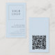 Modern Minimal Vertical Logo QR Code Soft Blue Business Card