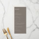 Elevate your reception tablescape with this modern taupe wedding menu card featuring a clean, minimalist layout and refined typography. The vertical design and soft neutral tone create a timeless, sophisticated look that complements formal, rustic, or contemporary celebrations.