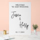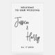 Modern minimal wedding welcome sign featuring simple script calligraphy typography.