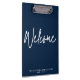 Modern Minimal Welcome Script Dental Office Blue Clipboard