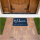 Modern Minimalist Welcome Doormat in dark blue and white with personalised business name.