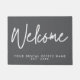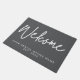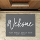 Modern Minimalist Welcome Doormat in grey and white with personalised business name.