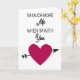 This minimal greeting card features a big pink heart and black modern text on a white background.