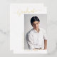 This silver foil, elegant yet minimalist graduation announcement card, features design elements of modern text fused with calligraphy script. The front of the card text is in real foil with your choice of gold, silver or rose. The graduates photo is artfully placed on the front of the card while the back of the card offers personalised text spaces for information about the graduation and future journey. To see more items like this, visit my store here at "www.Zazzle.com/LakeViewCardCo". Thanks