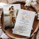 This romantic wedding invitation card features a beautifully soft aesthetic, blending a faded photo background with elegant typography for a timeless feel. The front highlights the wedding details seamlessly layered over a full-page photo in classic serif fonts that evoke a sense of sophistication and intimacy. The back complements the design with another full-photo layout, enhanced by simple and refined text placement. Perfect for any colour palette or wedding theme, including modern, indoor or outdoor, boho, country, upscale and casual weddings, this design captures the beauty of a heartfelt celebration with a modern yet timeless charm.