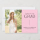 This graduation invitation features elegant text on a light pink background accented with a simple vertical line. This modern minimal design offers space for three photos of the graduate. Personalise this invitation with your graduation party details.