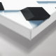 A striking contemporary abstract artwork featuring a dense matrix of 3D isometric cubes. The design utilises a high-contrast monochromatic palette of solid black and crisp white, with varying cube heights creating a dynamic, architectural landscape. Perfect for adding a sophisticated, tech-inspired, and structured look to any modern home office, gaming room, or minimalist living space.
