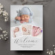 Modern Minimalist 4 Photo Collage Baby Boy Birth Announcement