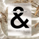 Minimalist modern ampersand wedding invitation featuring black and white design in simple style.