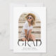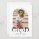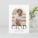 Celebrate years of hard work with our modern minimalist graduation announcement invitation in a simple black and white colour scheme. This on modern and minimalist design features a single photo framed in the trendy arch shape. The word "GRAD" overlaps the bottom of the photo. Flip it over to find the graduation party details.