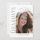 Simple and chic, this graduation party invitation has a designer look with its arch-shaped photo template to personalise with a photo of the graduate. The simple neutral colour scheme has a clean white background with beige/taupe text on the front and black text on the back. Personalise the text with your details.