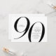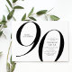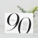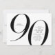 Modern black and white minimalist 90th birthday party invitation features stylish number 90 and your party details in classic serif font, simple and elegant, great surprise adult milestone birthday invitation for men and women.