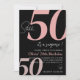 Modern Minimalist Black and White Pink Birthday Invitation