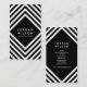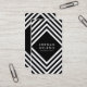 This modern vertical business card features a white minimalist geometric design against a black background. It is ideal for various professions like Consultants, Stylists, Jewellery Designers, Bloggers, Event Planners, Wedding Coordinators etc; anyone that want a way to let the people they meet in real life know how to find them and their work/portfolio online and on social media.