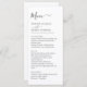 This modern minimalist dinner menu combines sleek black and white elements for a timeless and chic look. With black script against a clean white background. The simple yet elegant design ensures that your meal selections are presented beautifully. Matching items available.