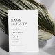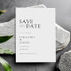 Modern wedding save the date card featuring minimalist typography in black and white colour.
