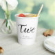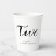 Celebrate your child's second birthday with these Modern Minimalist Black Script Paper Cups. Featuring sleek black script on a white background, these cups add a stylish and simple touch to your party decor, perfect for a modern and chic theme.