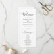 This elegant wedding ceremony program showcases sleek black script on a crisp white background, ideal for a modern minimalist wedding. The simple yet refined design allows customisation with the couple’s names, wedding date and location, order of service, bridal party details. A perfect blend of elegance and simplicity for your big day.