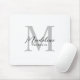 Modern Minimalist Black Script White Grey Monogram Mouse Pad