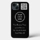Elegant, modern, minimalist, Logo, QR Code, stylish, simple black and white iPhone 13 case. Perfect for business. Personalise with name, website and logo.