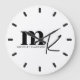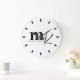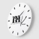 Modern Minimalist Black White Monogram Large Clock