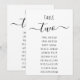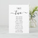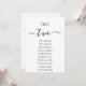 In the upper part, there is the table number written in a handwriting script and the word Table above, in smaller caps (hand letters). Under them, there are the 10 guest names, in similar hand letters. The background is white, all text is black.