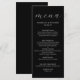 An simple modern dinner menu card for your wedding reception for features a classic black card with white typography. Personalise with your names and wedding date. Would also be appropriate for an anniversary, birthday or elegant dinner party.