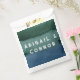 Elements: abstract watercolor wash background. Names and details appear in modern sans serif fonts. Back features photo and RSVP QR code. Colours: blue, green, emerald, ocean, sea green, navy, royal blue, azure. Themes: modern, minimalist, contemporary, jewel tones. Collection: Modern Minimalist Blue Teal Photo Wedding Collection. Product Type: Favour Bag