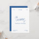 A sophisticated wedding invitation featuring an elegant handwritten script paired with clean serif typography in classic blue. Perfect for coastal weddings, French Riviera celebrations, and sophisticated minimalist wedding themes. The layout keeps the focus on names and typography, making it feel calm, airy, and elevated. Part of the coordinated wedding collection "Florence" — explore matching pieces across the full suite. Mockups for this design were created using Midjourney AI.