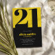 Modern minimalist 21st birthday invitation featuring simple design with elegant chic typography in black and yellow colour.