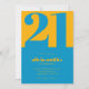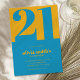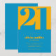 Modern Minimalist Blue Yellow 21st Birthday Invitation